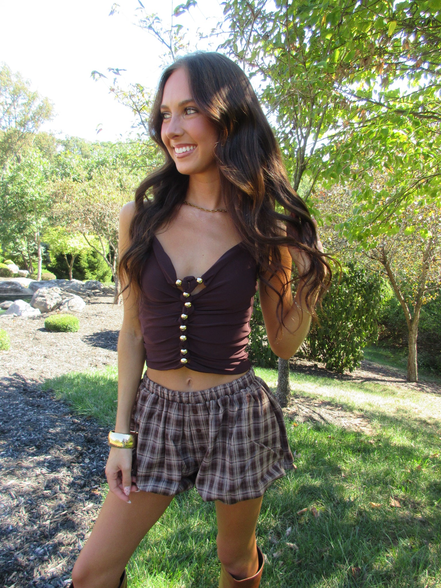 Comfort meets style with our Plaid Bubble Shorts. Designed with a low to mid-rise fit, these shorts offer a unique bubble silhouette that adds playful volume while keeping you comfortable all day. The classic plaid pattern elevates any outfit - pair with your favorite going-out top, or an oversized sweater! Elevate your fall wardrobe with shorts that deliver both comfort and eye-catching appeal!